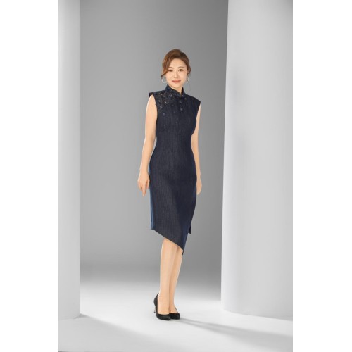 靛蓝銹紋改良旗袍